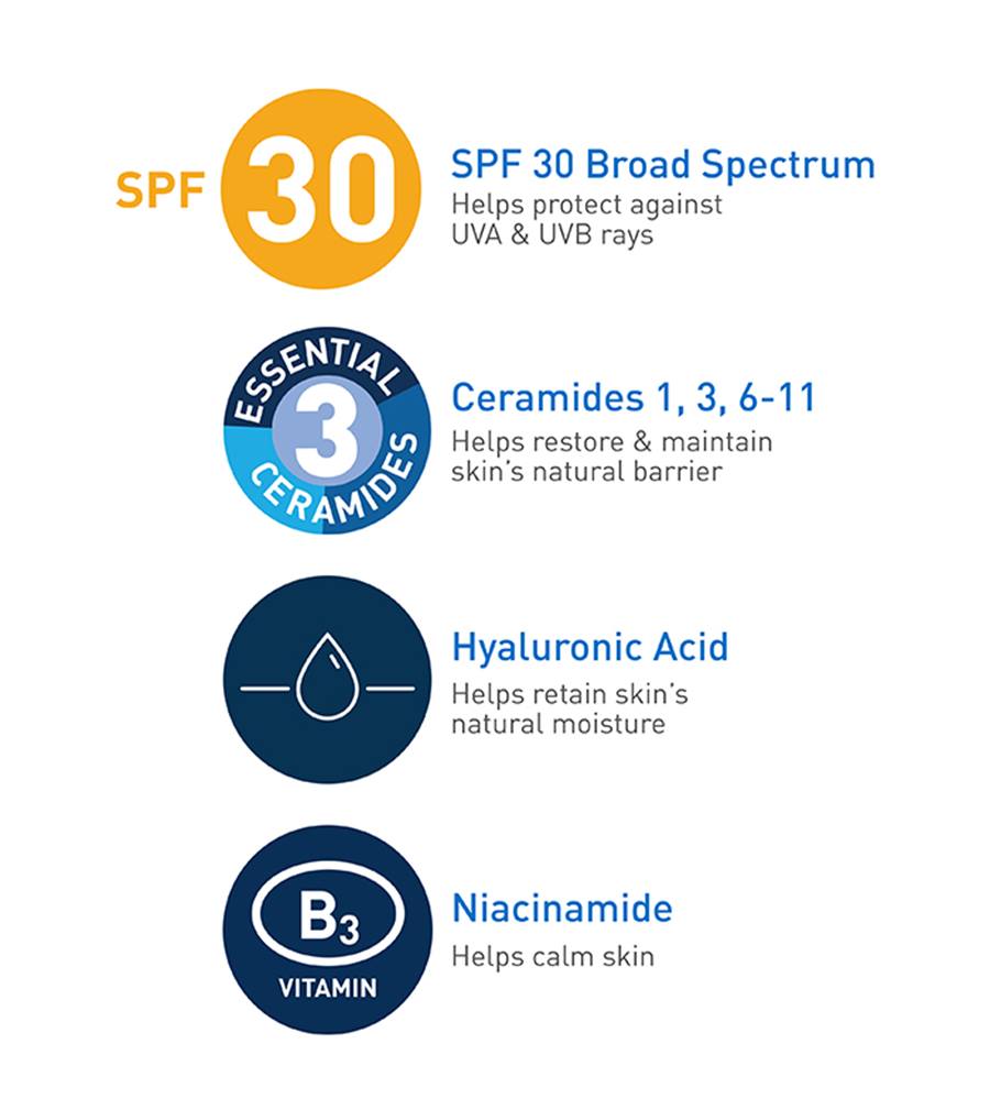 CeraVe AM Facial Moisturizing Lotion with Sunscreen SPF 30 is a dermatologist-developed daily moisturizer that provides broad-spectrum sun protection while delivering long-lasting hydration. Ideal for normal to dry skin, this lightweight lotion is enriched with ceramides, niacinamide, and hyaluronic acid to help restore the skin barrier, calm irritation, and lock in moisture.